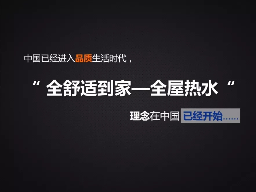 中國已經進入品質生活時代,消費逐步升級,“全舒適到家—全屋熱水”理念在中國已經開始,全屋熱水時代已經到來。未來邁能會為大家提供更多有價值的解決方案,謝謝!